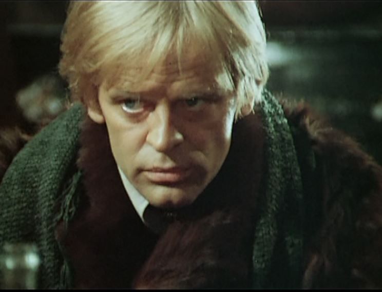 しかもベルガーもキンスキーも金髪でちょっと角ばった顔つきをしていて容貌の基本が同じだし(ただ顔の造作そのものは全く違う)、最初登場してくる際どちらも襟元がなんとなくワヤワヤした服装をしているのも共通項。そして双方雰囲気が陰気で、これも双方「Wanted」のチラシというかポスターというか、紙切れをビラビラ自慢げに見せびらかす。