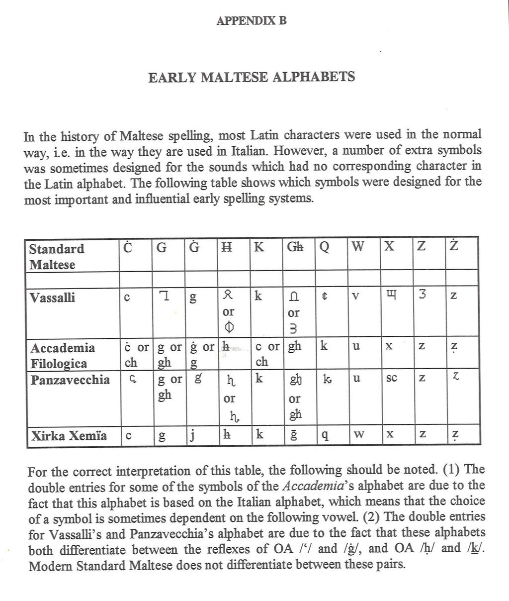 マルタ語正書法のいろいろ。M. H. Prevaes. 1993. The emergence of Maltese. Den Haagから