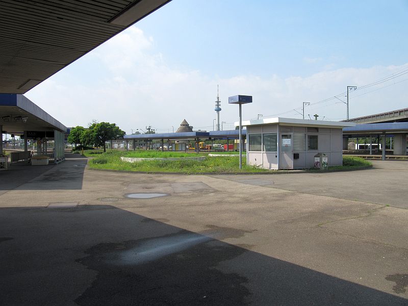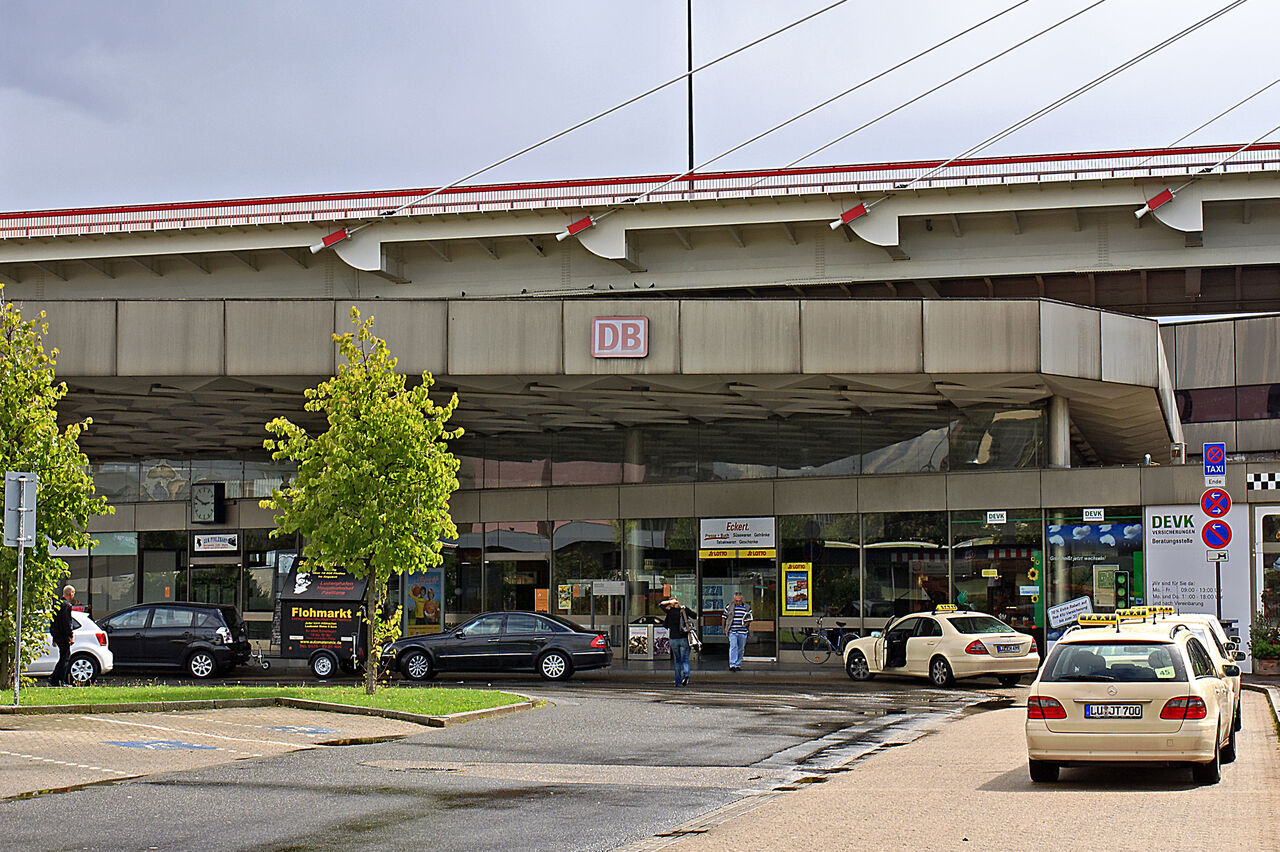 これが本当に市のメインステーションの入口なのか?!上を通るのは駅の建物とは無関係なアウトバーン(下記参照)。https://de-academic.com/dic.nsf/dewiki/885316から