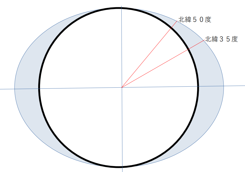 この疑問に決着をつけるには北緯36度と50度地点での地球の回転速度と中心からの距離を(厳密にいえばこれも違っているはずだ)調べて遠心力を計算しさらにそれによって空気層が何メートル伸びるか導き出さないといけない。500mくらいでは人間には差が感じられないだろうから「気のせい」あるいは「原因は他にある」ということになろうが、その前にそんな計算をするにはどこから手をつけてどうやったらいいのかが全くわからないのでこれ以上は勘弁してもらいたい。楕円をドイツ語や英語で Ellipse というが、この語はギリシャ語の ἔλλειψις から来ている、実はそもそもそういう話がしたいばかりに話を振っただけなのである。